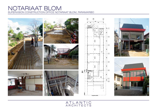 Supervision of construction was carried out by Atlantic Architects. The two storey building is set on a long and narrow site in an old residential area adjacent to the centre of Paramaribo. Interior finishing by Atlantic Architects.