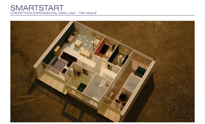 Experimental dwelling competition in The Hague. This 216 square meters city dwelling has an open plan and can be used in various situations ranging from a loft studio for the eccentric single – the “no partitions” type. Or as a 3-generations family house – the 3 bedroom apartment and separate studio for grandparents. And all there is in between.